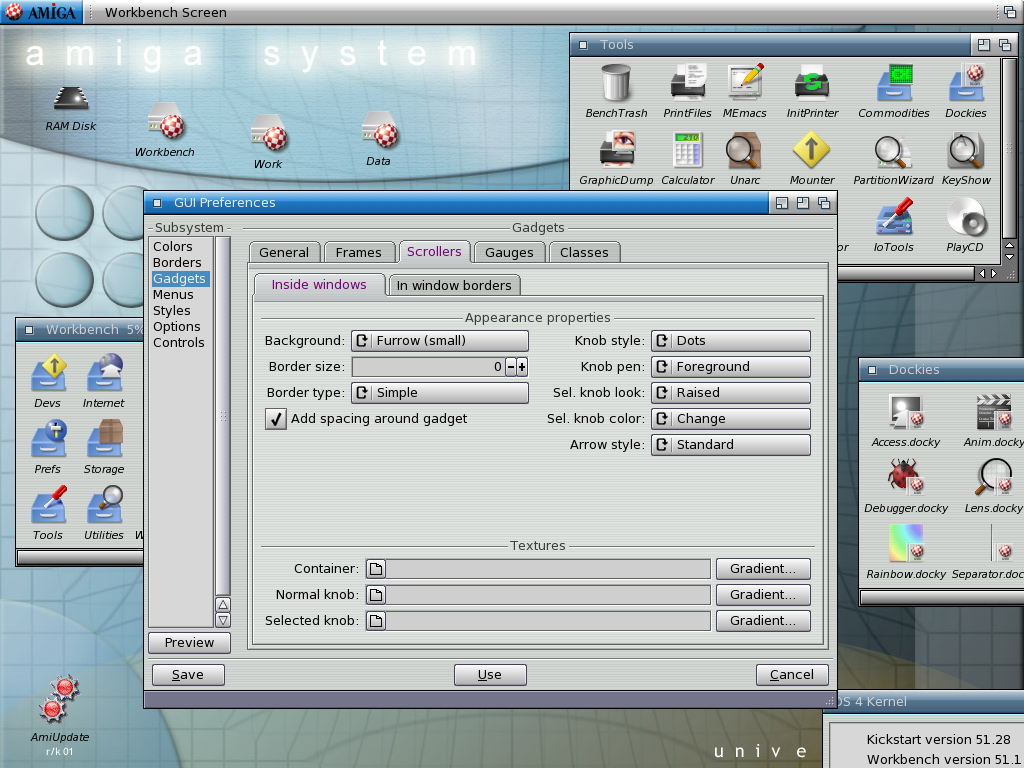 This new version of Intuition unlocks functionality which demonstrates the very high degree of customisation of the user-interface which is now possible under AmigaOS 4.0.
